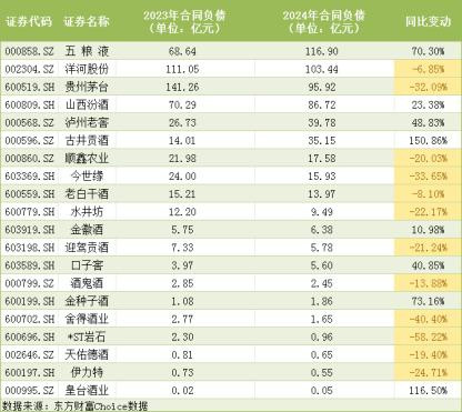 放眼行业,截至去年末,A股20家白酒上市公司共有合同负债约561亿元,较上年同期的533亿元增长5.22%。在此背景下,今世缘合同负债33.65%的缩水幅度,在众多白酒上市公司中仅次于*ST岩石(600696.SH)和舍得酒业(600702.SH)。